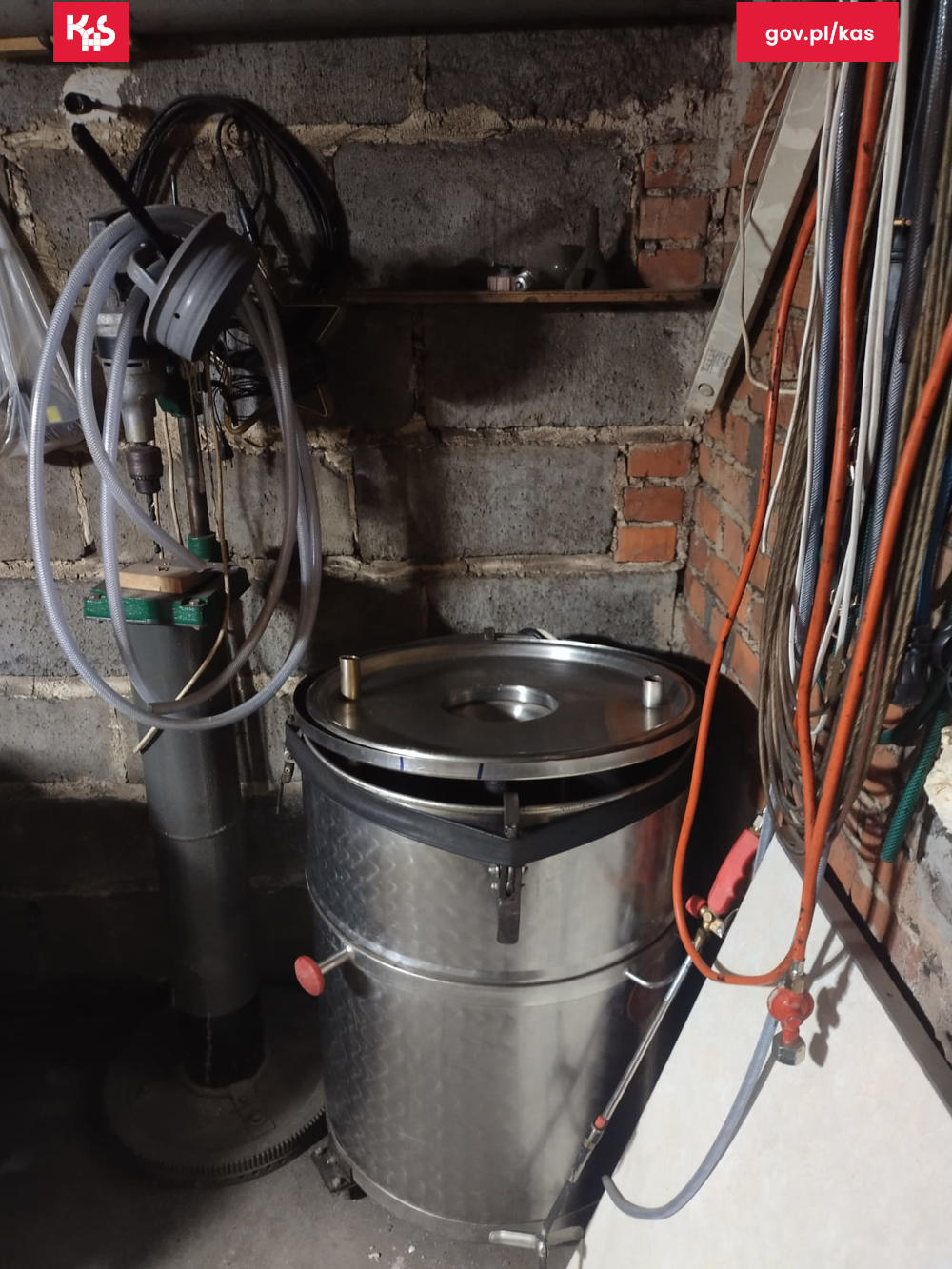 16 kwietnia 2025 r. funkcjonariusze z Wielkopolskiego Urzędu Celno-Skarbowego w Poznaniu (WUCS) dokonali przeszukania miejsca nielegalnej produkcji alkoholu.