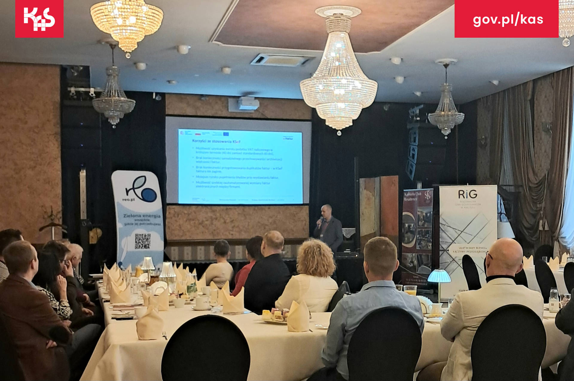 W trakcie spotkania przedstawiciel Pierwszego Urzędu Skarbowego w Kaliszu zaprezentował założenia oraz podstawowe informacje dotyczące Krajowego Systemu e-Faktur.