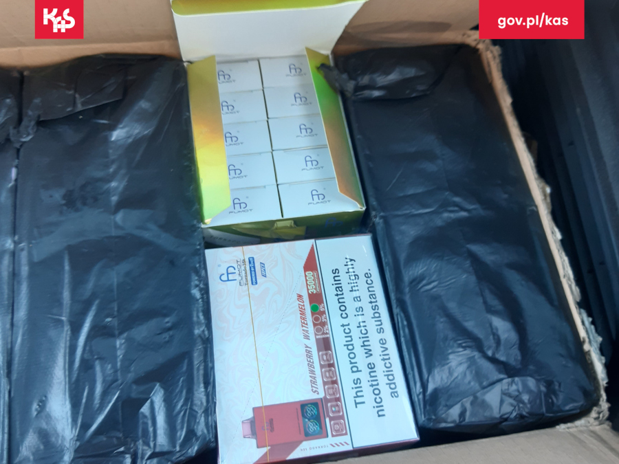 Funkcjonariusze Służby Celno-Skarbowej (SCS) z Wielkopolskiego Urzędu Celno-Skarbowego w Poznaniu (WUCS) wykonywali działania służbowe na terenie powiatu konińskiego. Podczas kontroli samochodu, funkcjonariusze znaleźli jednorazowe e-papierosy różnych marek o różnych pojemnościach bez polskich znaków akcyzy. Zatrzymane e-papierosy nie miały także polskich oznaczeń o ochronie zdrowia przed następstwami używania tytoniu i wyrobów tytoniowych.