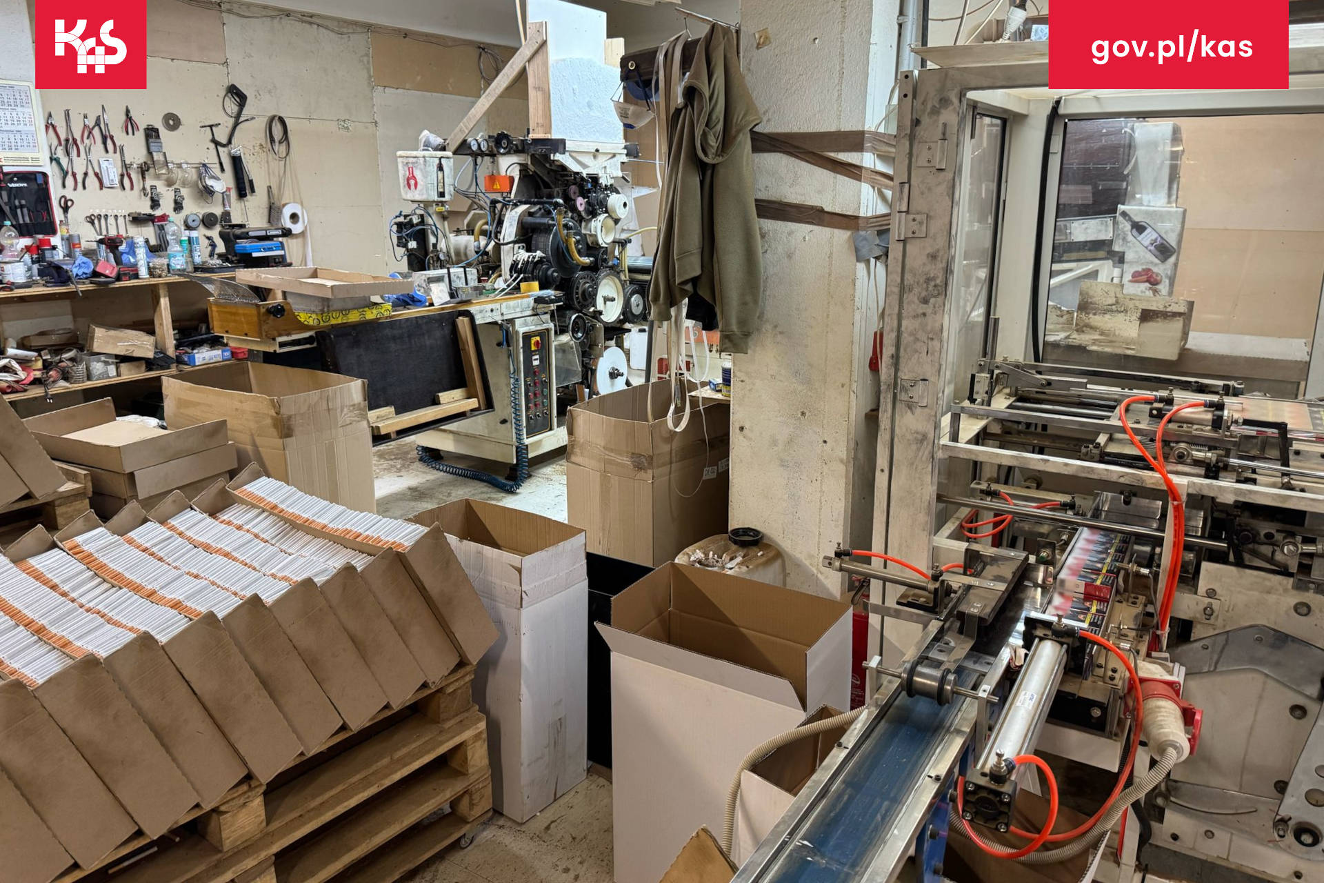 Funkcjonariusze w Niemczech i Holandii zabezpieczyli prawie 32 mln szt. papierosów i 14,5 tony tytoniu. Na terenie „fabryki" zabezpieczono również dwie profesjonalne kompletne linie służące do produkcji i pakowania papierosów, maszynę do cięcia oraz przerabiania tytoniu oraz materiały do produkcji gotowych papierosów. Podczas przeszukań pomieszczeń przy użyciu psa służbowego zabezpieczono 108 000 euro w gotówce.